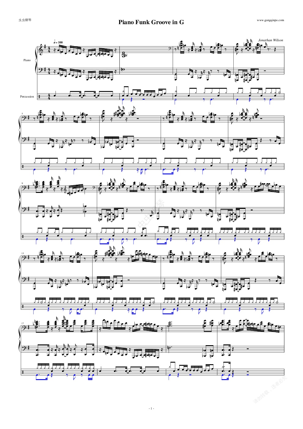 钢琴谱:Funk Groove in G【钢琴+鼓】