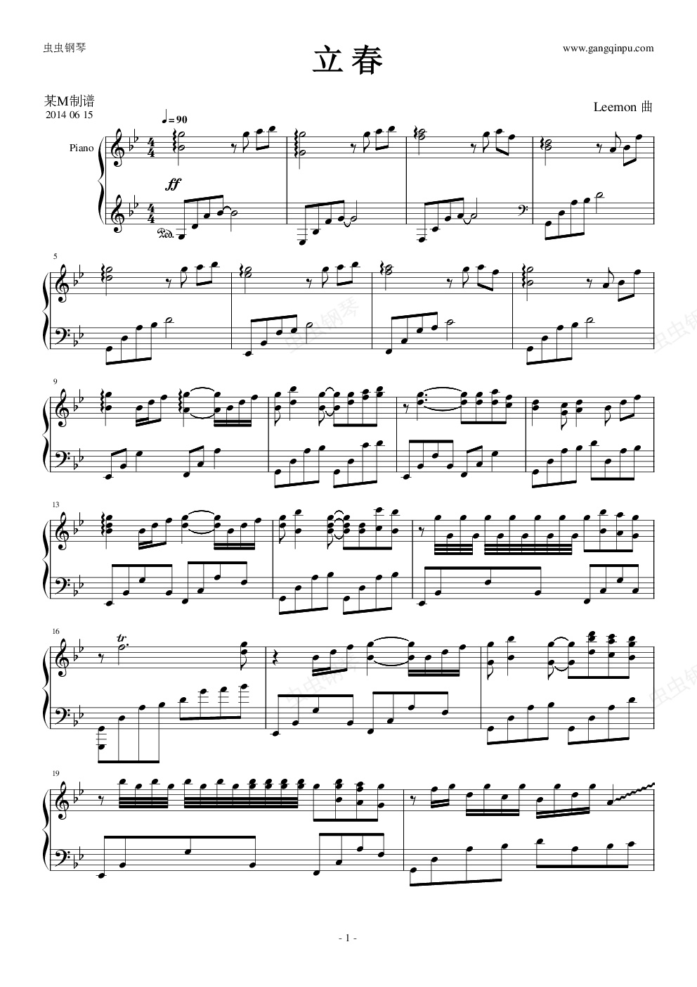 钢琴谱:立春——岁乐纪