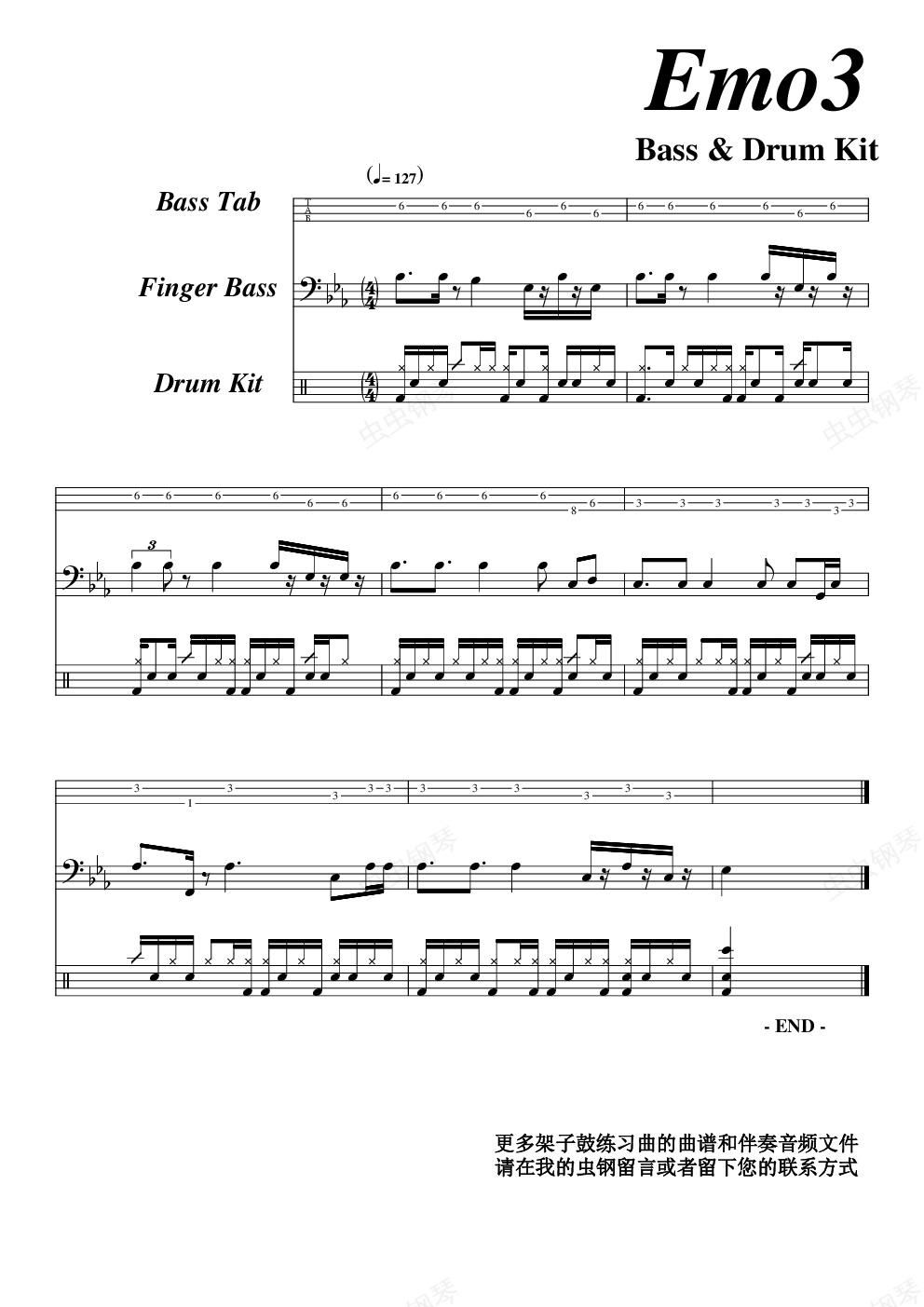 钢琴谱:Emo3 架子鼓与贝司的配合