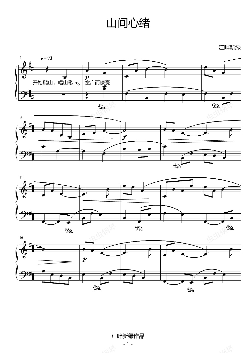 钢琴谱:山间心绪