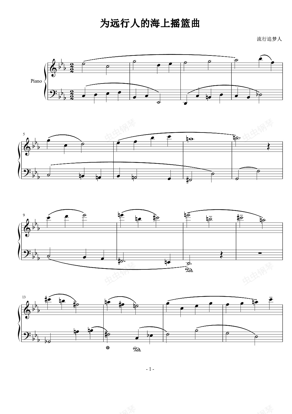 钢琴谱:为远行人的海上摇篮曲