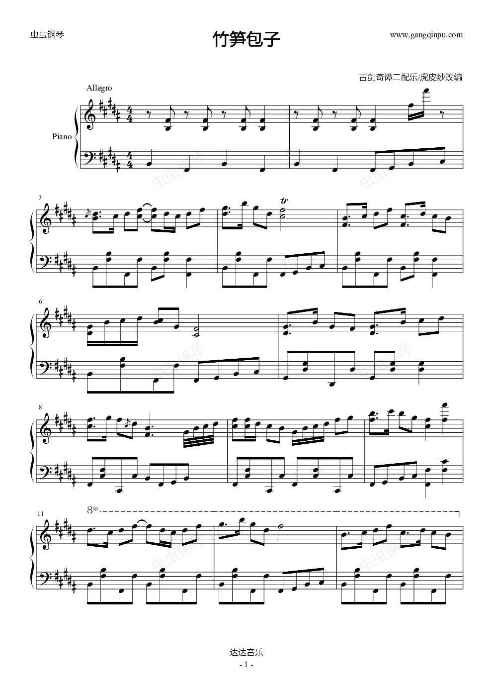 钢琴谱:古剑奇谭二配乐竹笋包子