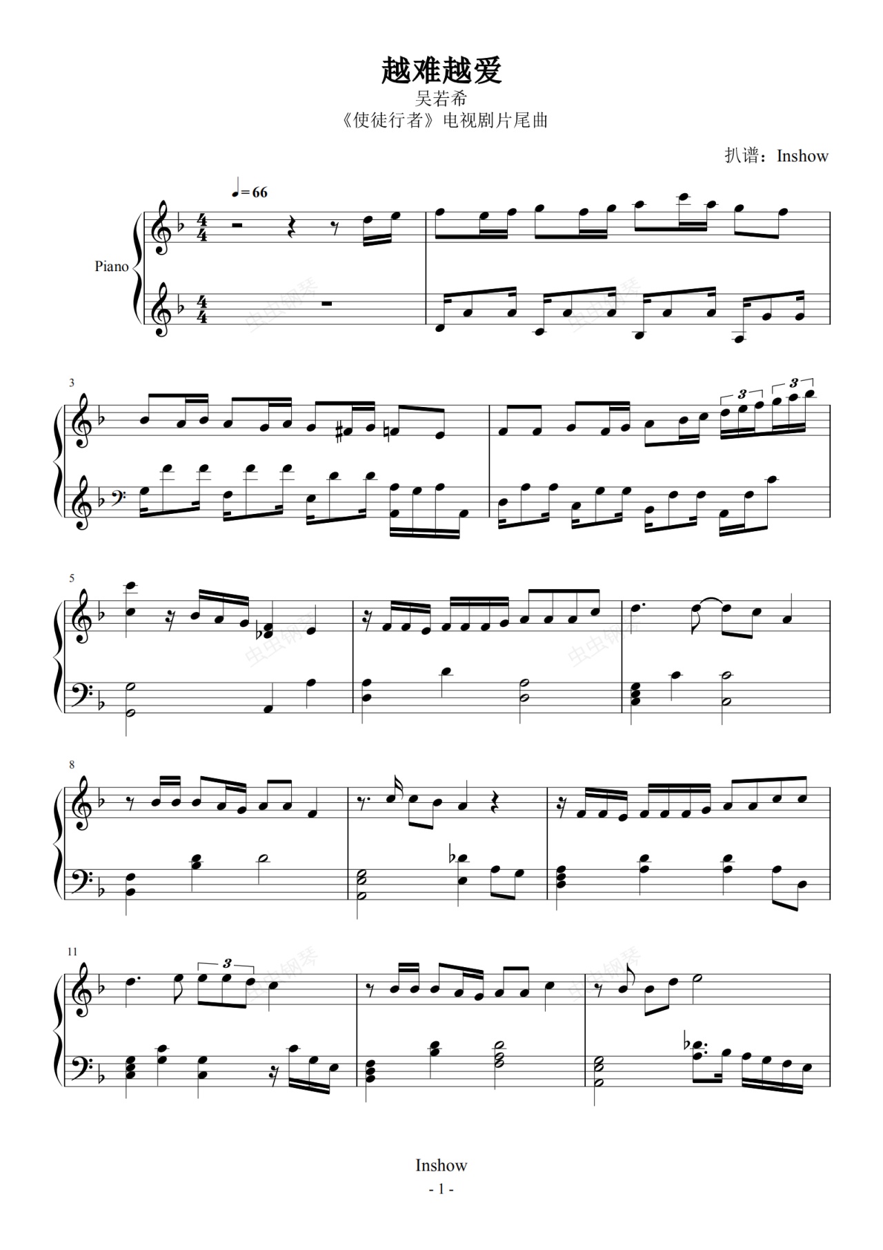 钢琴谱:越难越爱-《使徒行者》片尾曲