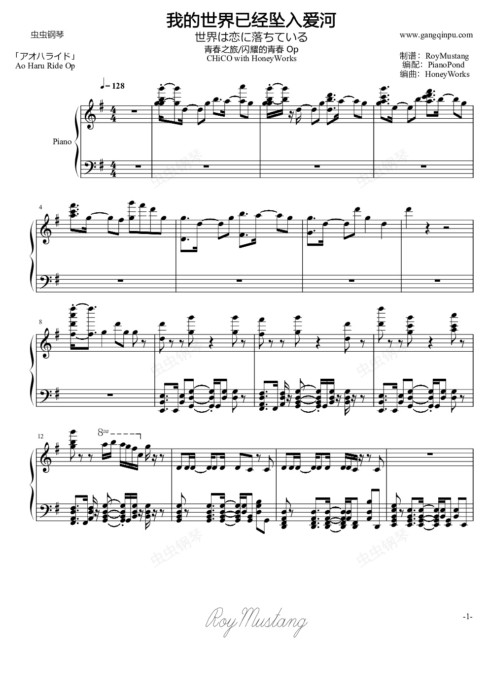 钢琴谱:[青春之旅/闪耀的青春]-我的世界已经坠入爱河-