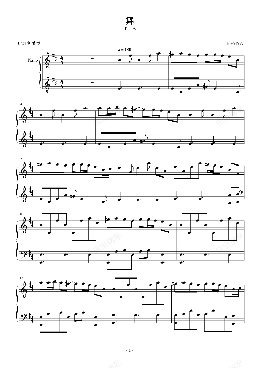2014年10月24日~25日做的梦,没有明确的图像,但是有这种很鲜明的感觉。我想大家也应该做过这类的梦,仅仅是一种非常诡异但是又非常令人激动不安的奇怪感觉。很抱歉我还没有那么牛逼把我梦里的感觉完全还原,但我想这个的还原度至少有30。呃,确实不多。多乎哉不多也。总之希望大家喜欢了。 话说我又写了这种一分钟冒头的曲子了啊。 上次说的半年是我在扯淡。 至于《舞》这个标题……不是我起的,是别人的意见,吐槽跑题反正算不到我头上,我本来想起名叫做《10月24日梦境》的,但似乎太偷懒了。 总之希望大家喜欢。 我被新学校的生活虐到现在的语气了。是不是很正常呢。