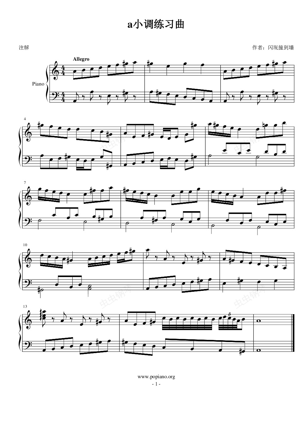 钢琴谱:a小调练习曲