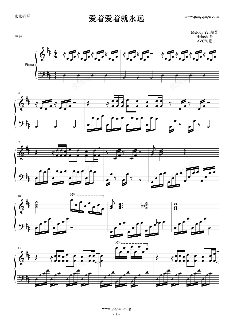 钢琴谱:爱着爱着就永远