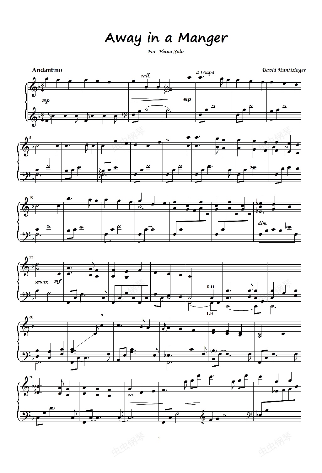 钢琴谱:Away in a Manger 马槽歌
