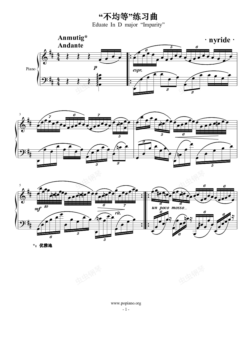 钢琴谱:不均等练习曲
