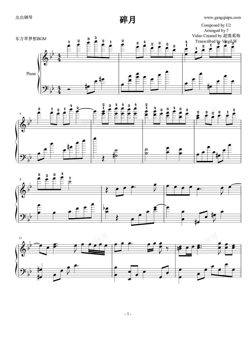 此曲版本比较多,这个是对着某视频扒下来又修改的,原编配者未考证