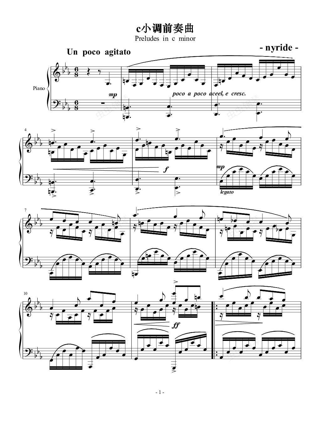 钢琴谱:c小调前奏曲