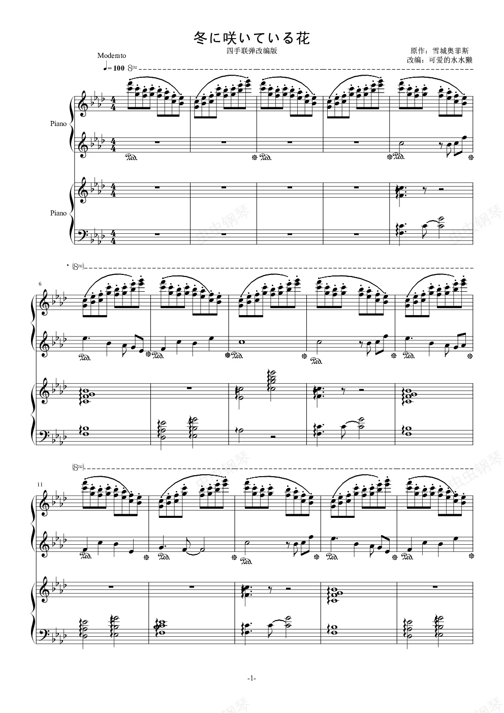 冬に咲いている花(盛开在冬天的花)四手联弹改编版