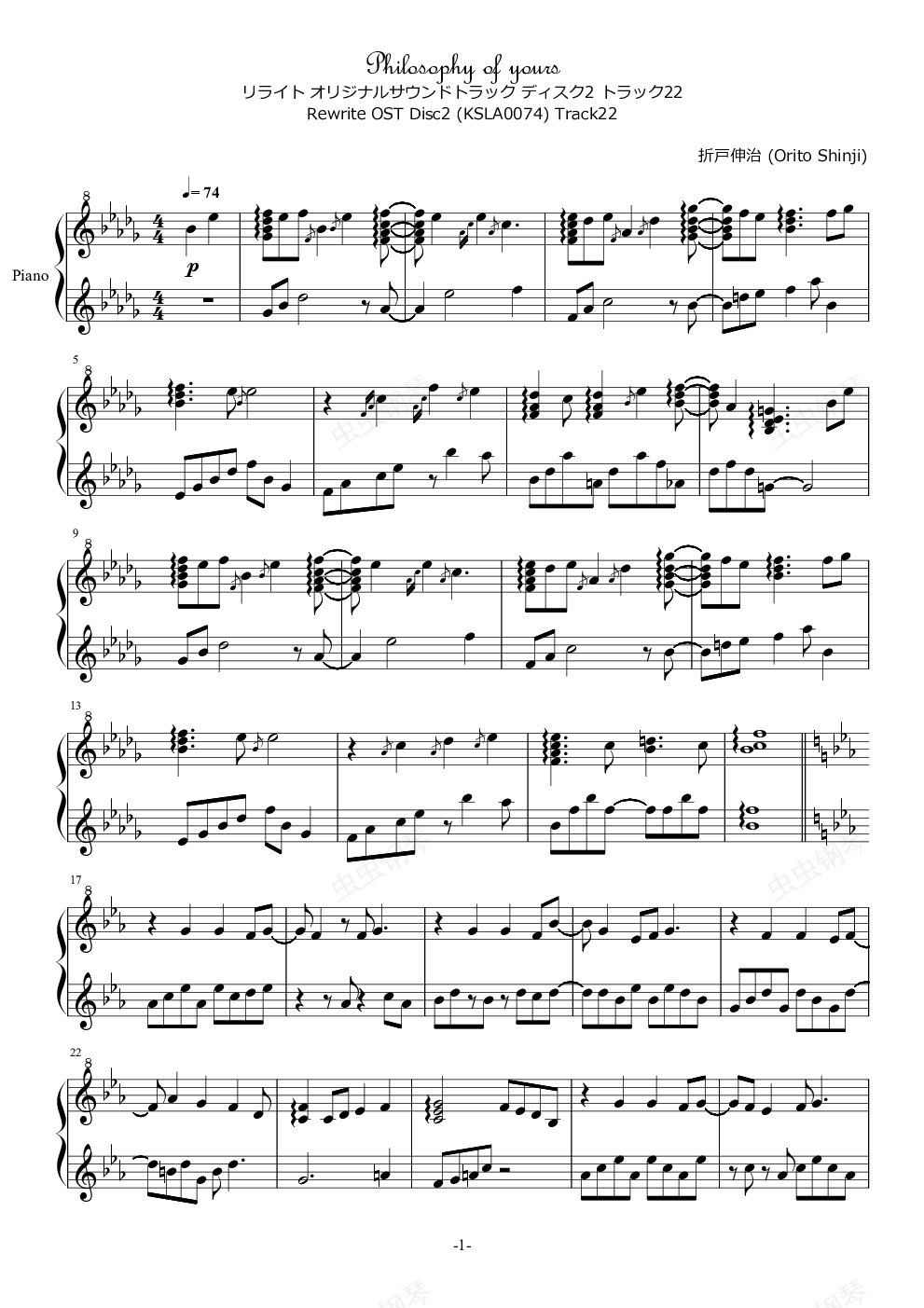 钢琴谱:【Rewrite】OST Philosophy of yours (リライト)(折户伸治)(basertyu)