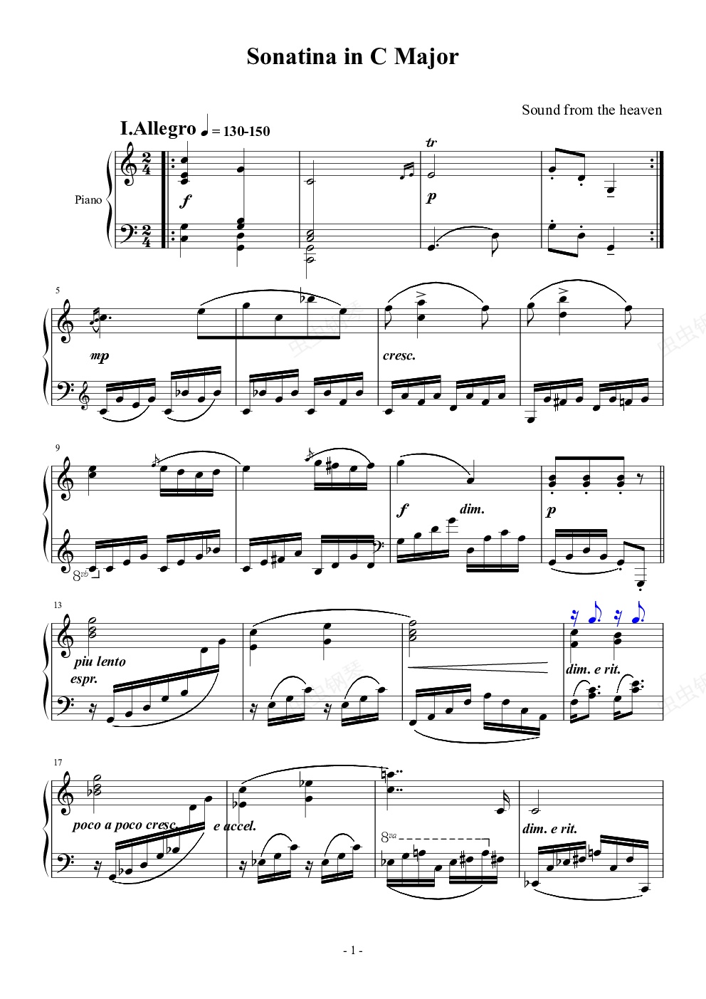 钢琴谱:C大调小奏鸣曲 第一乐章