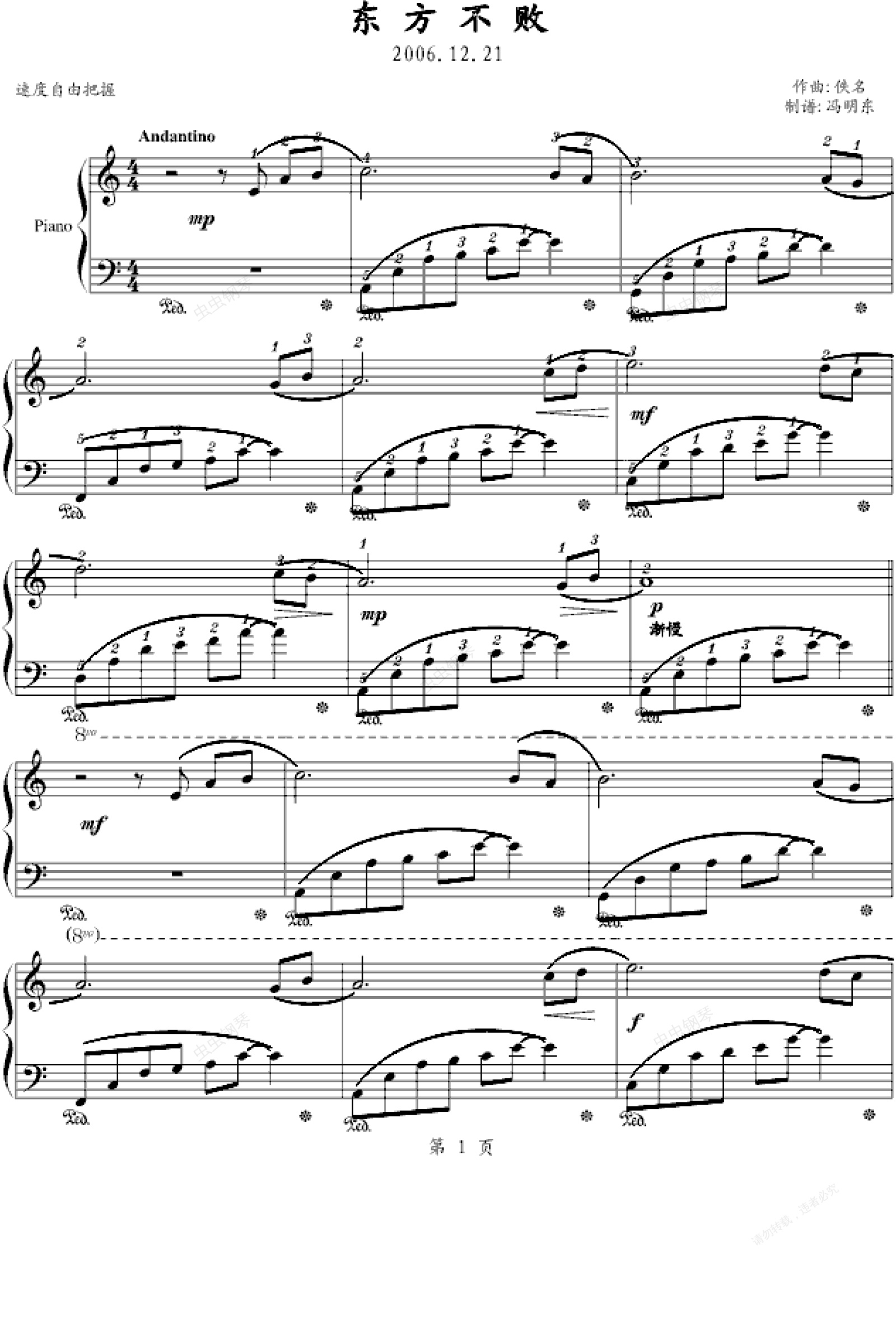 钢琴谱:东方不败
