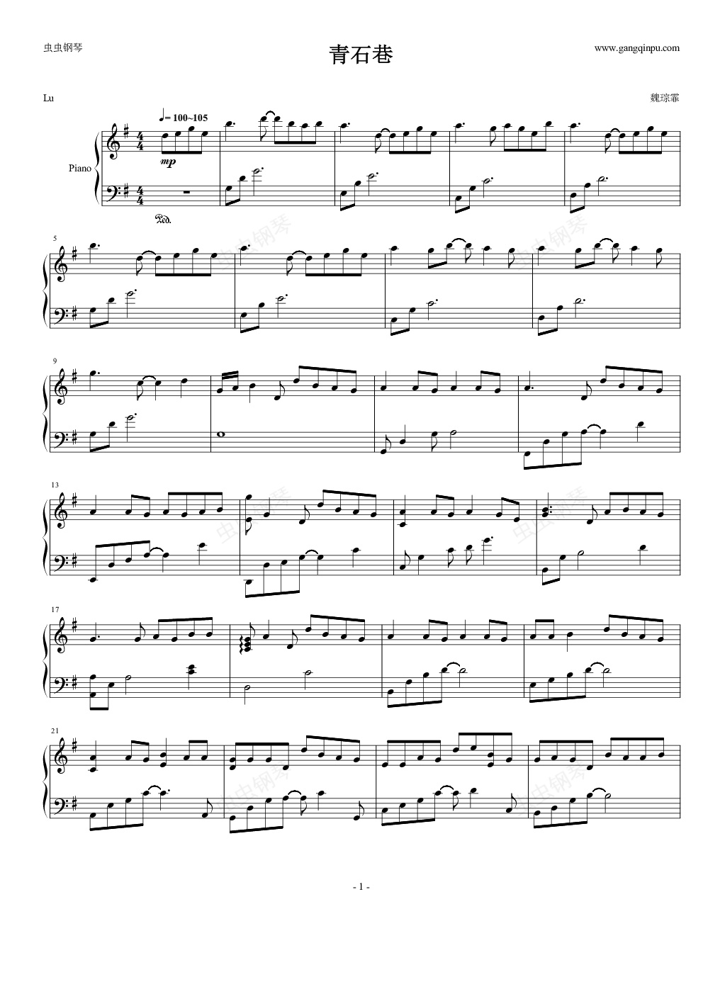钢琴谱:青石巷(别踩白块儿2版) - 魏琮霏