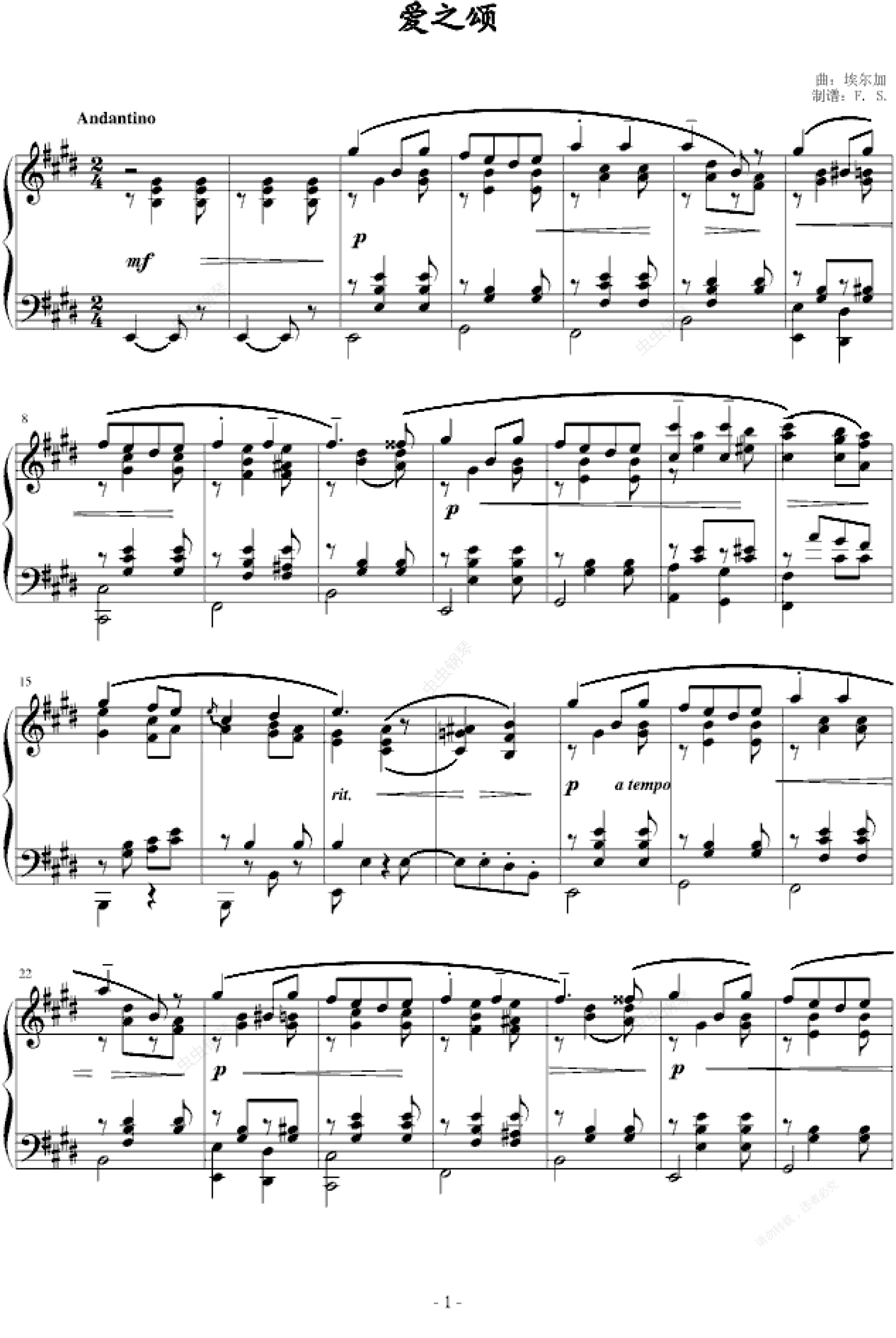 钢琴谱:爱之颂