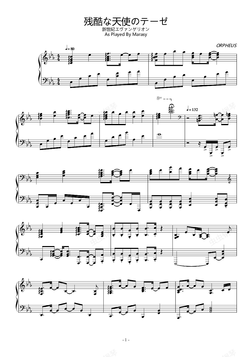 钢琴谱:触手猴-残酷な天使のテーゼ