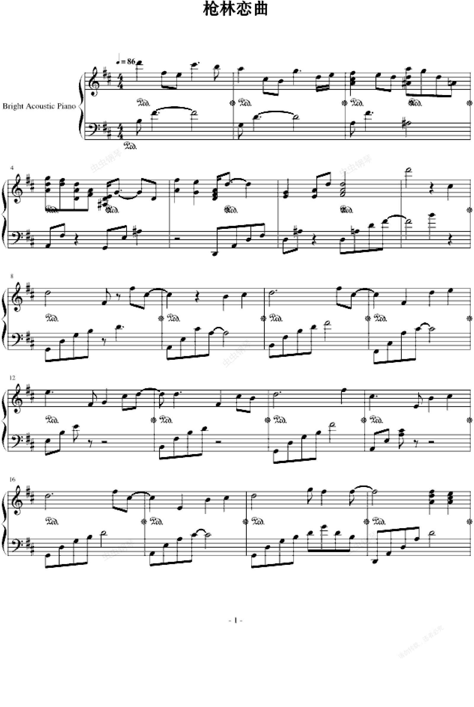 钢琴谱:枪林恋曲