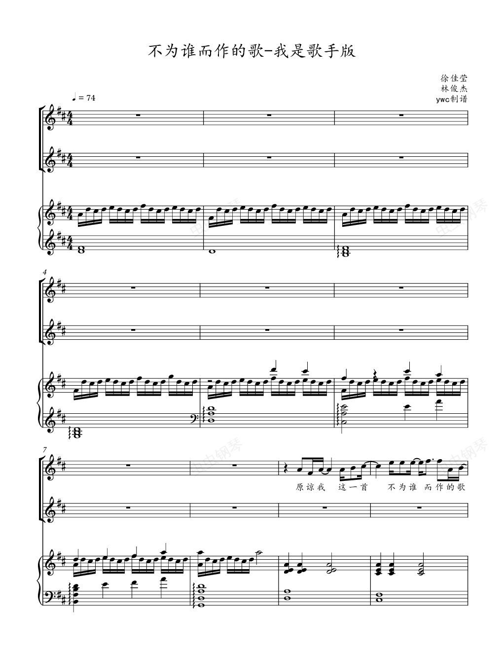 钢琴谱:不为谁而作的歌