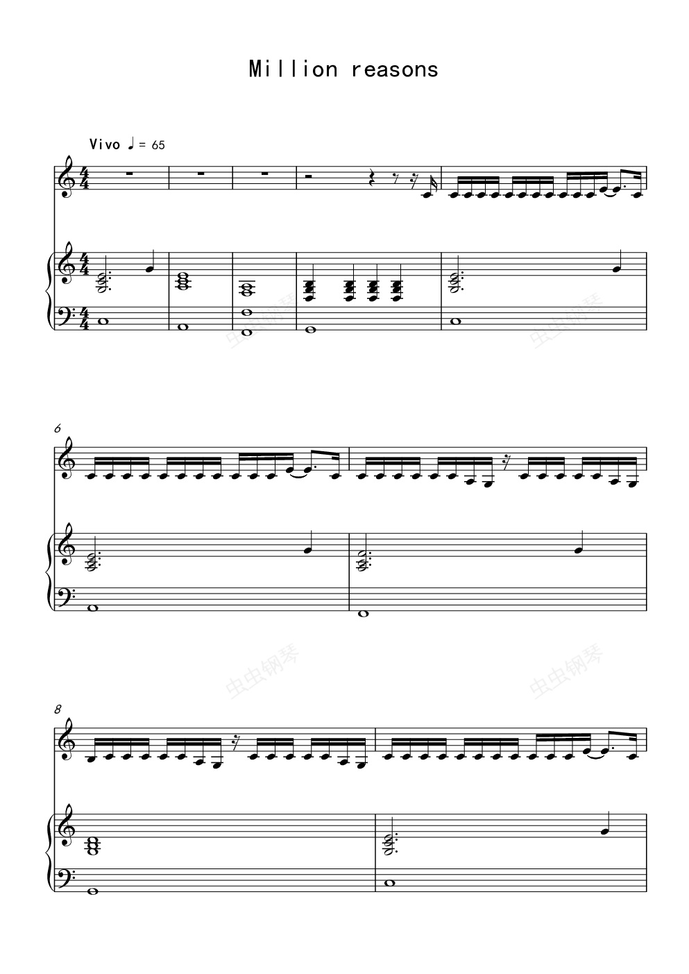 钢琴谱:Million reasons