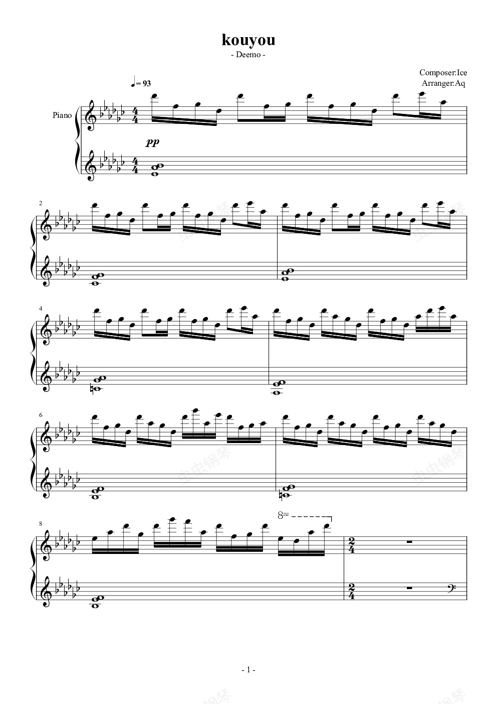 钢琴谱:kouyou (Piano Arrangement)
