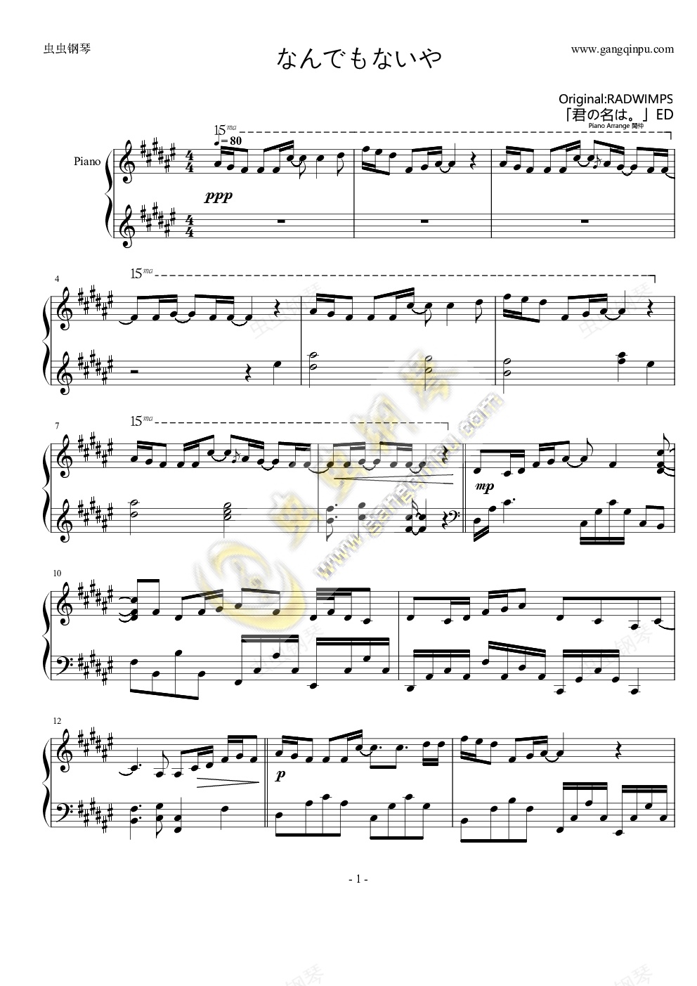 钢琴谱:なんでもないや - 你的名字。 君の名は。ED
