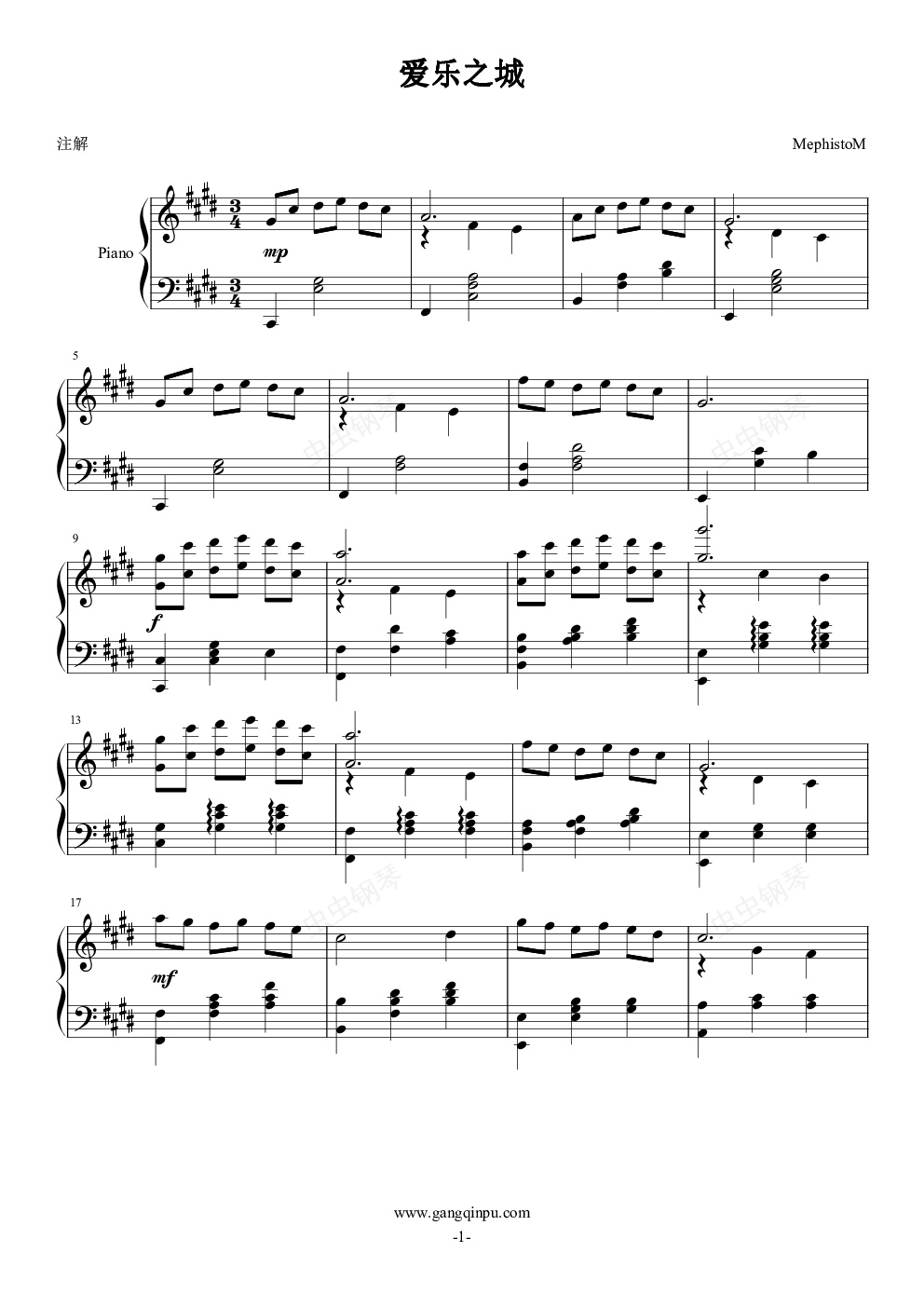 钢琴谱:Mia & Sebastian’s Theme 爱乐之城