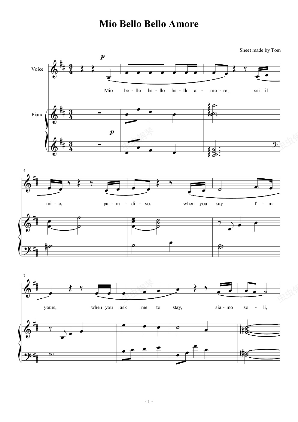 钢琴谱:Mio Bello Bello Amore - Cirque du Soleil