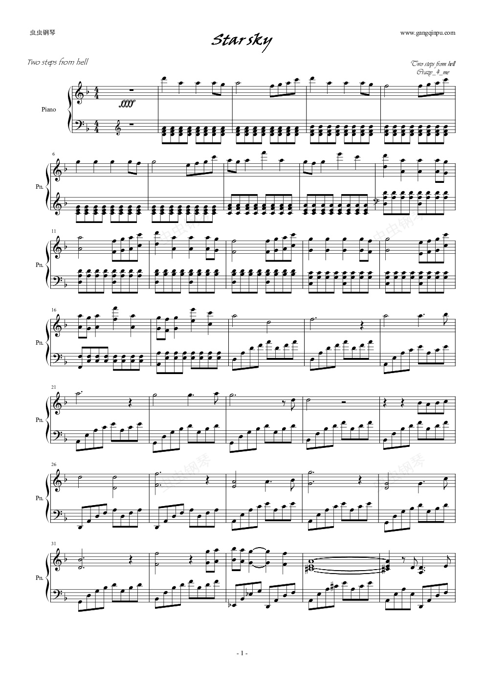 钢琴谱:Star Sky