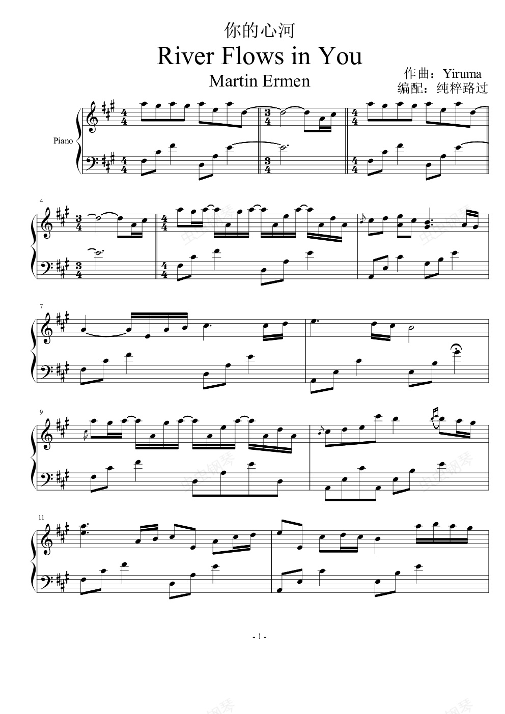 钢琴谱:【纯粹】River Flows In You(你的心河)