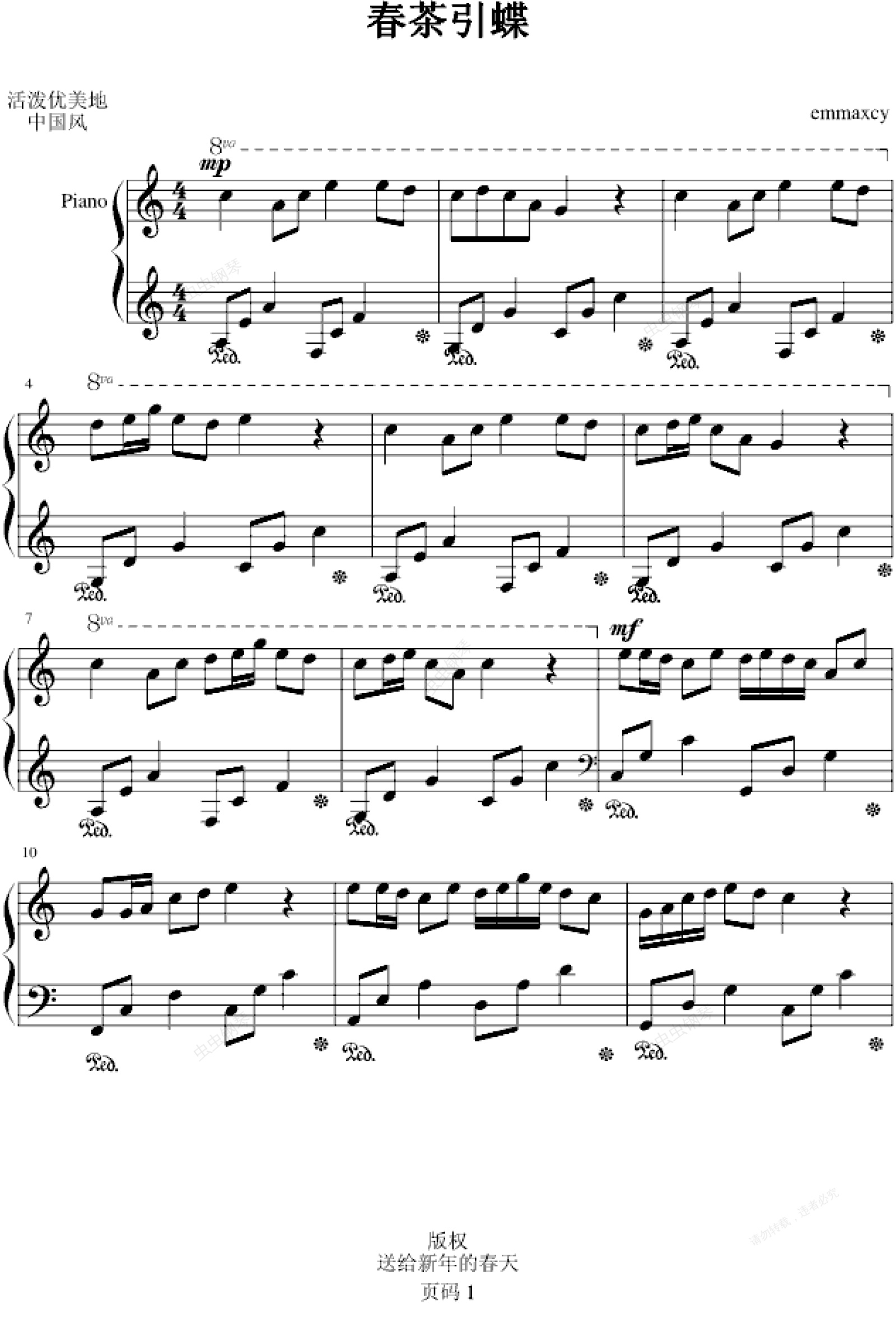 钢琴谱:春茶引蝶