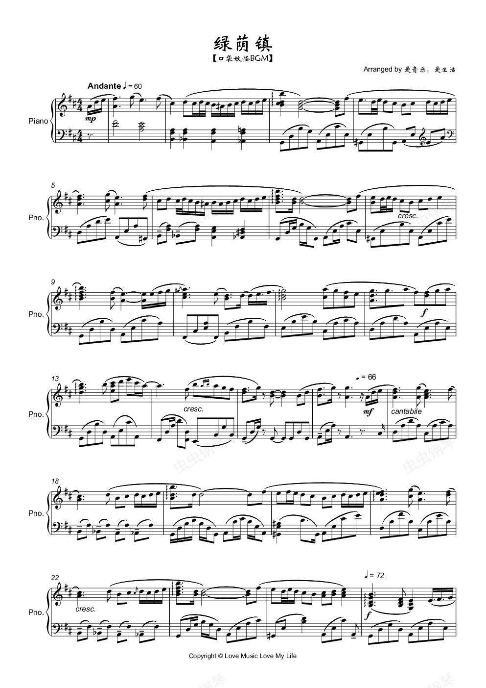 钢琴谱:【口袋妖怪BGM】绿荫镇