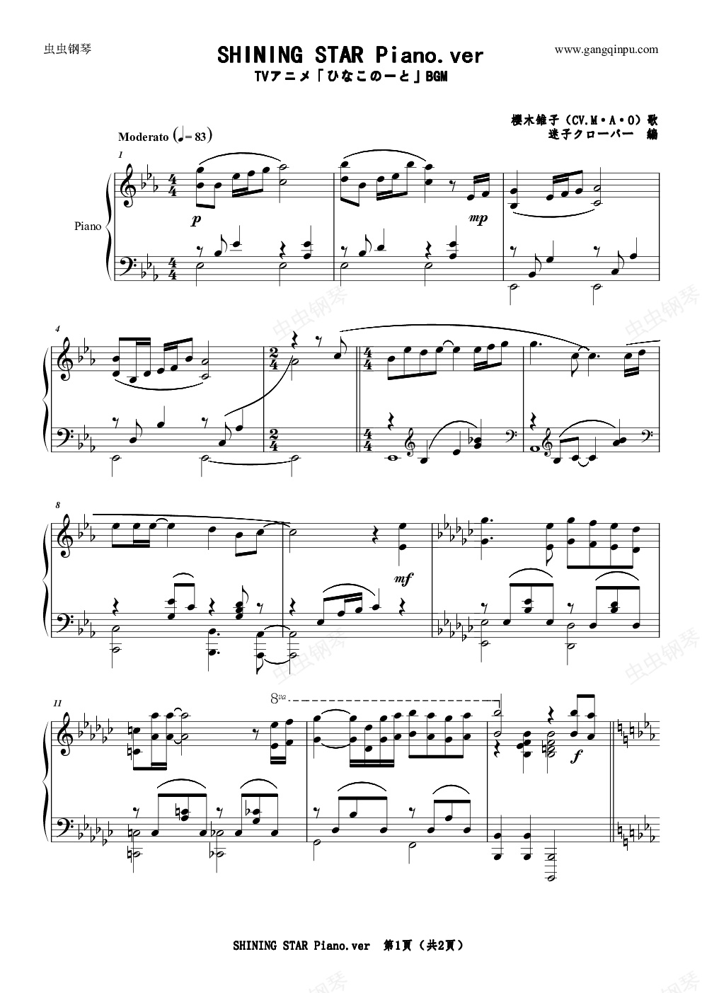 钢琴谱:【雏子的笔记】OST SHINING STAR Piano.ver