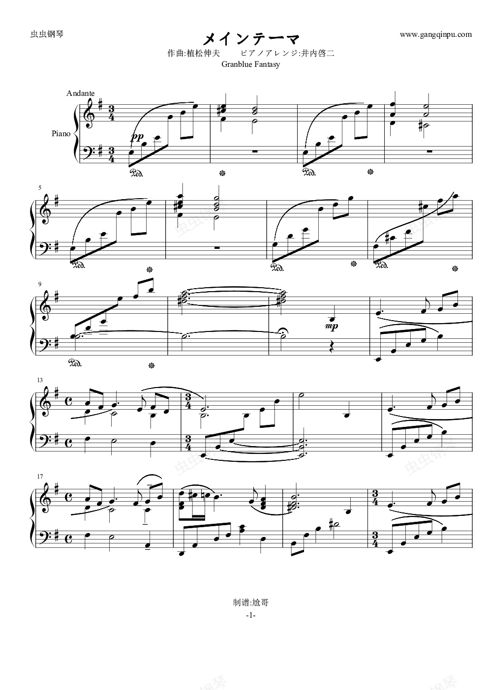 钢琴谱:【碧蓝幻想】メインテーマ     主题音乐     グランブルーファンタジー