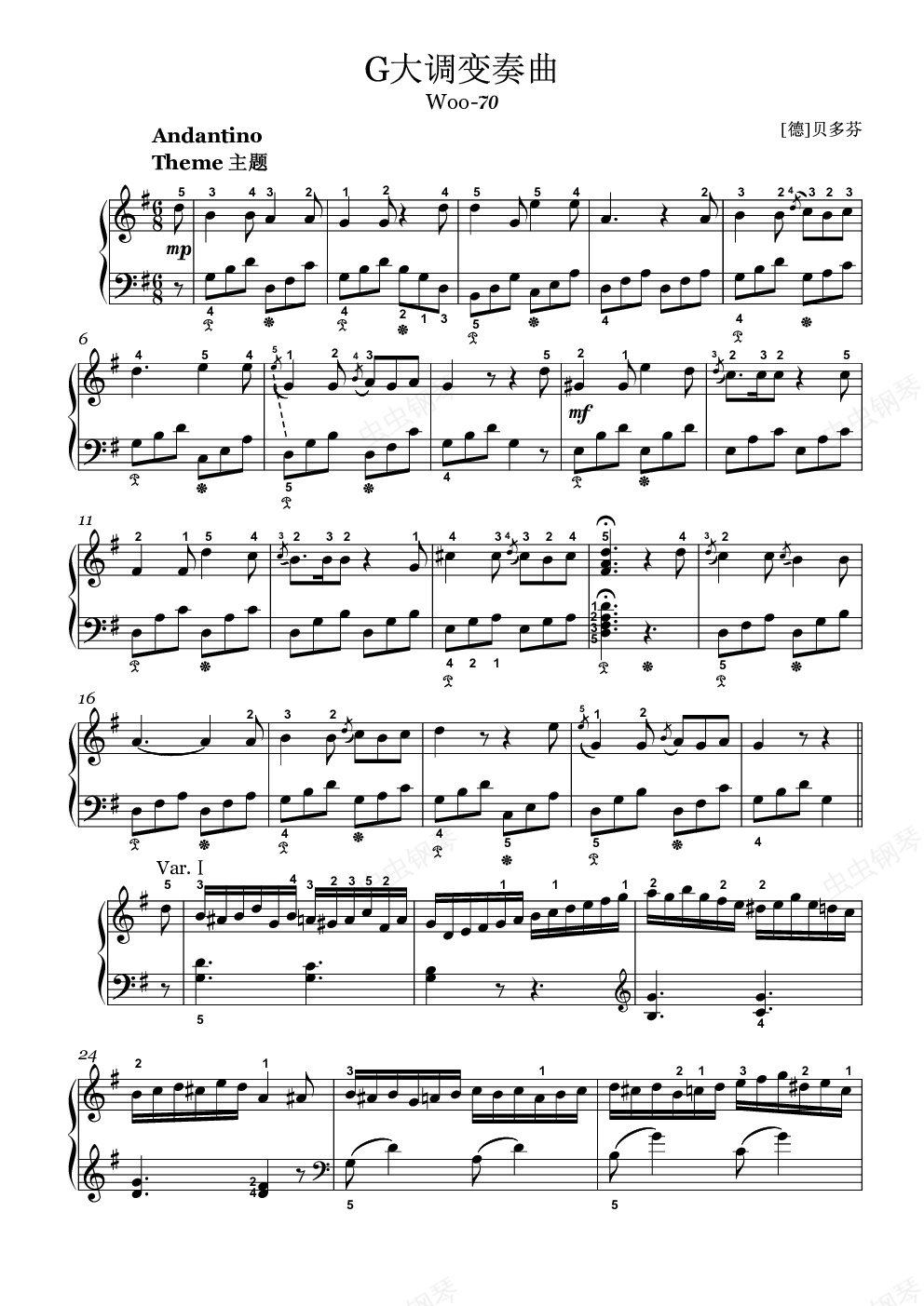 钢琴谱:贝多芬-G大调变奏曲-Woo-70