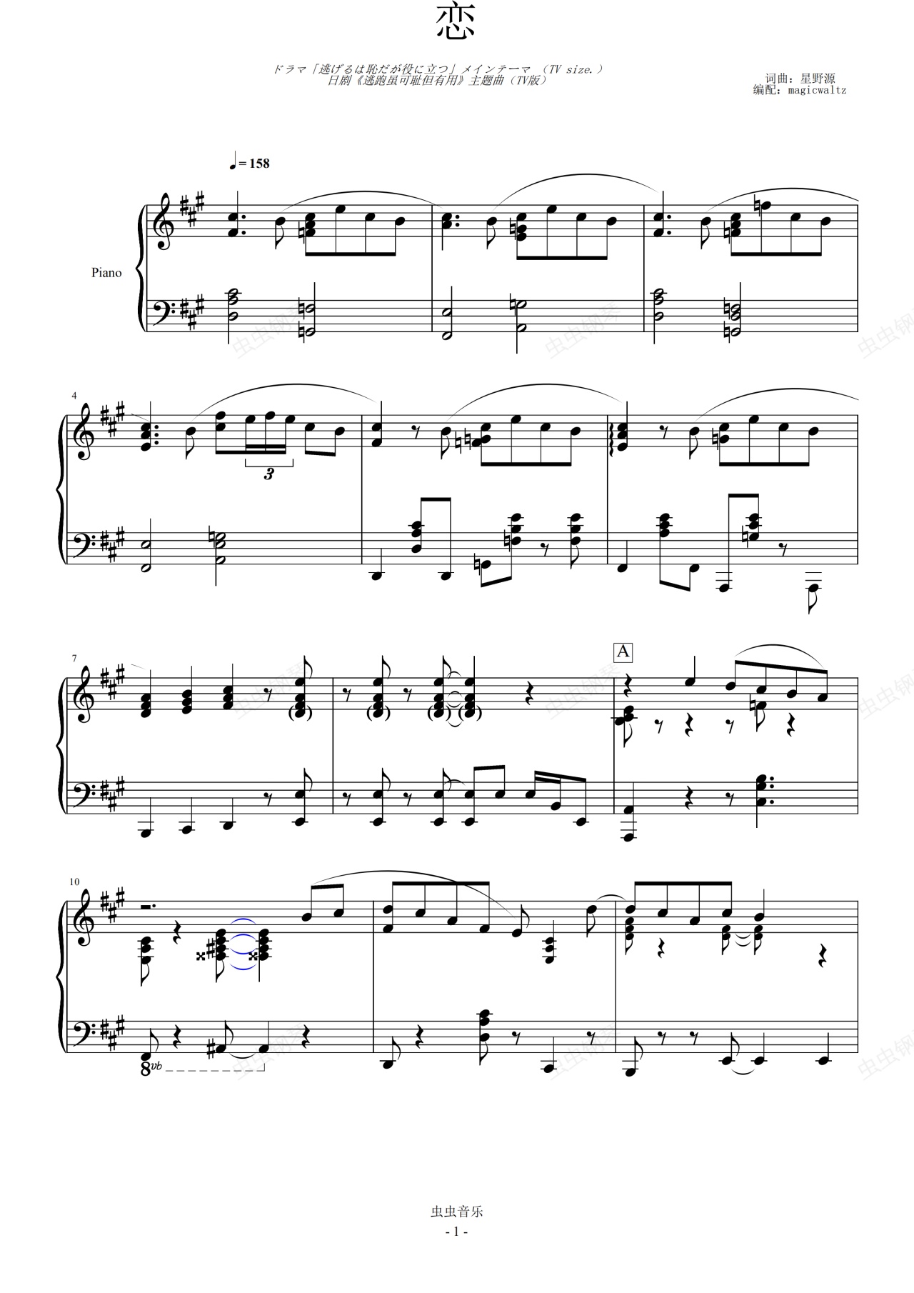 钢琴谱:恋-星野源(TV size)逃避虽可耻但有用ED