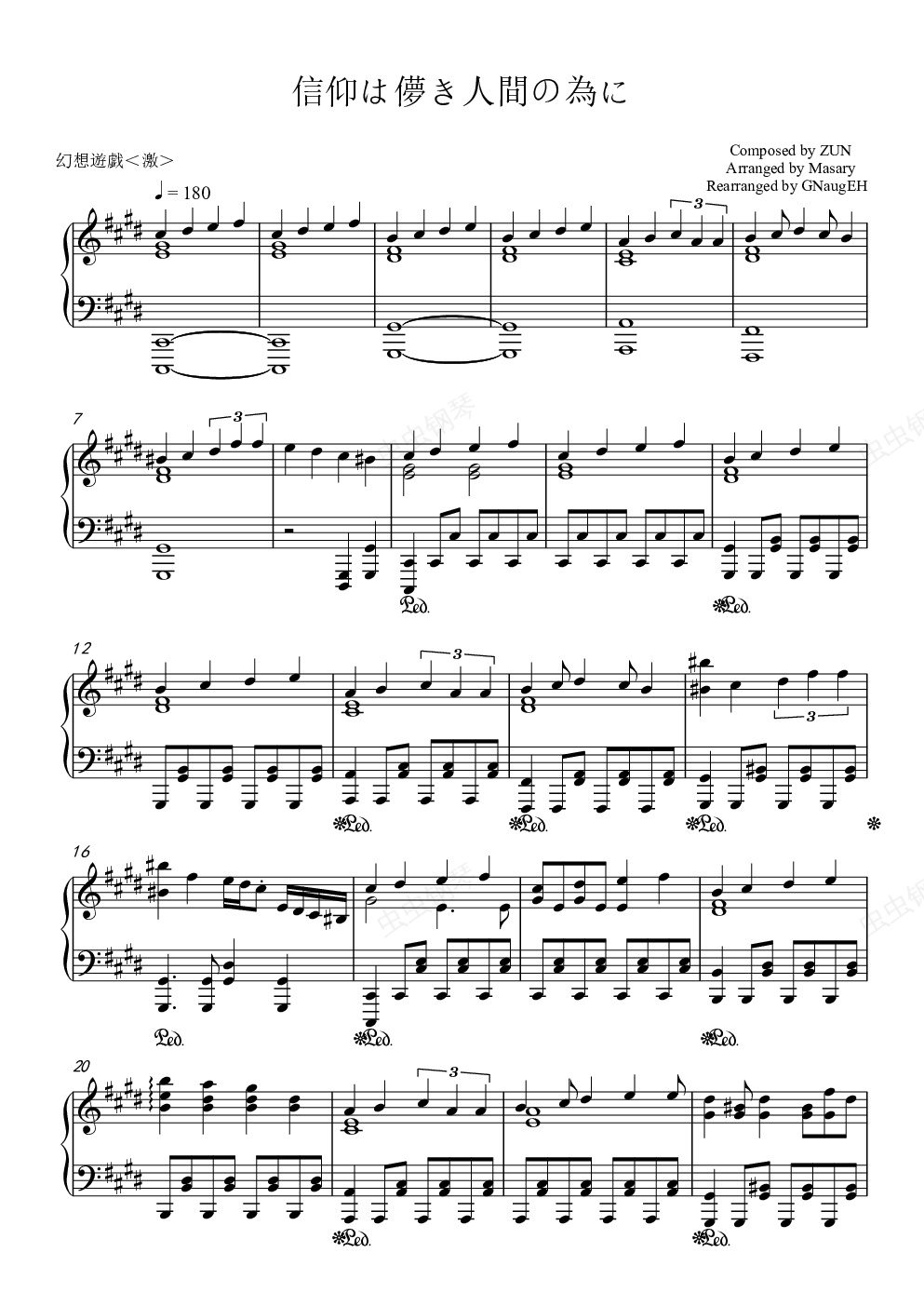 钢琴谱:【东方】【触手猴】信仰は儚き人間の為に【幻想游戯<激>】