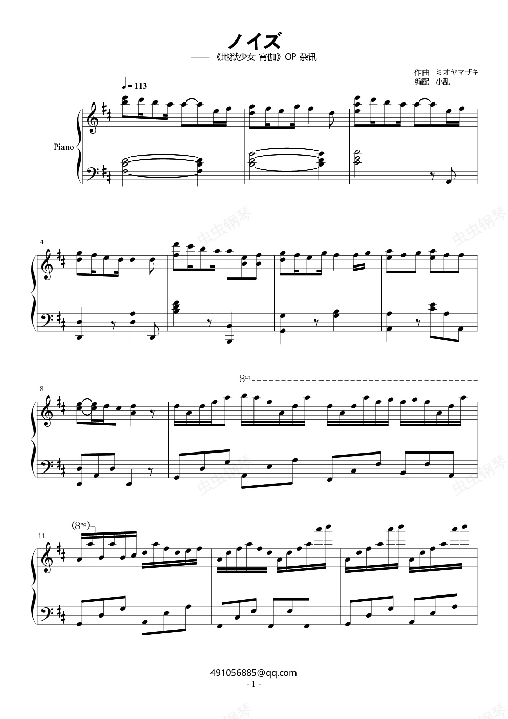 钢琴谱:【地狱少女 宵伽】ノイズ