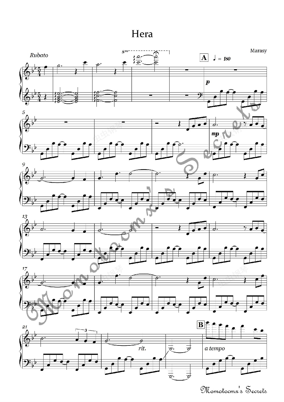 钢琴谱:Marasy(触手猴)-Hera
