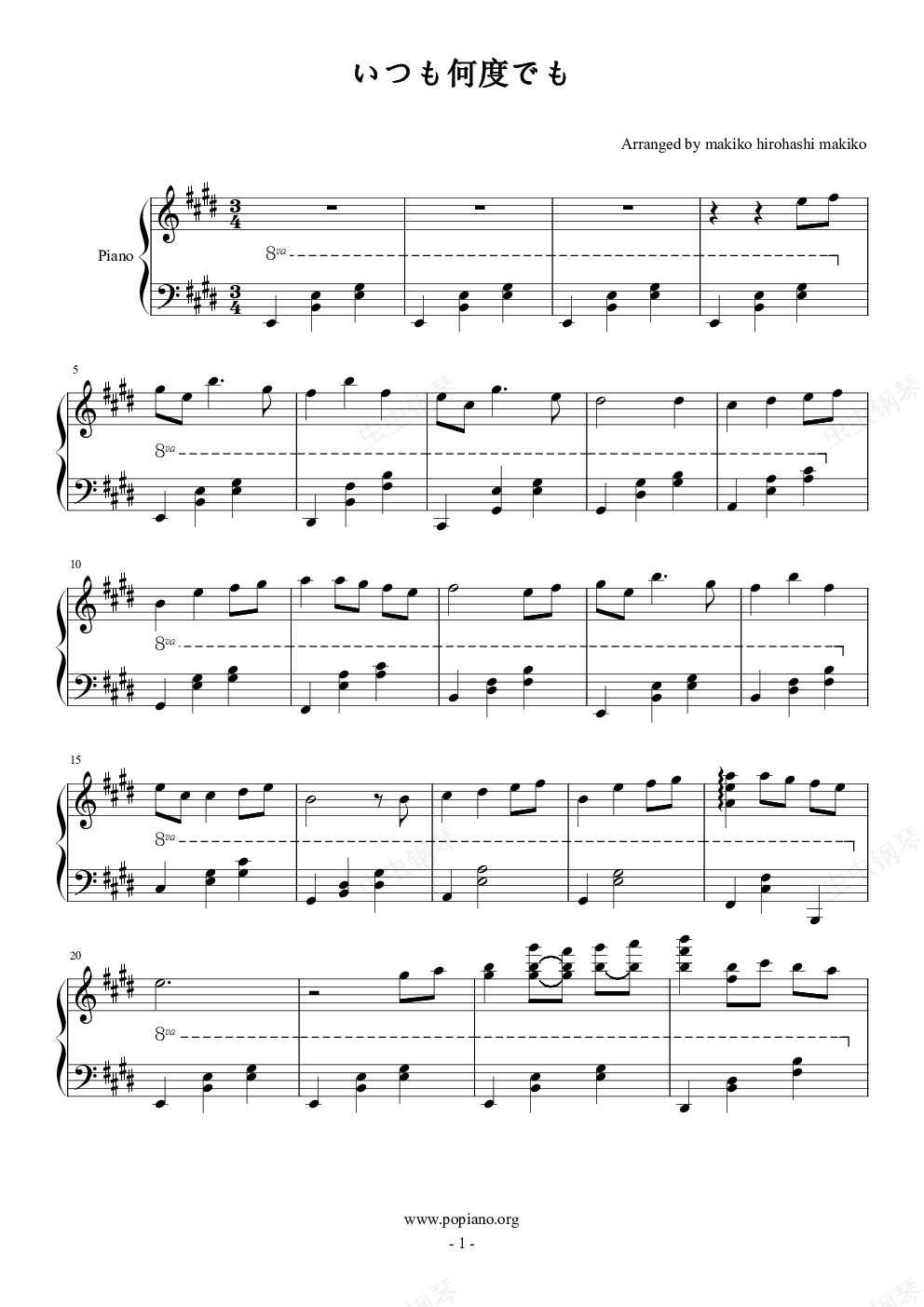 这个版本的いつも何度でも是広橋真紀子大师编配的,谱子不是原谱依旧是个人扒的,非常喜欢的一个版本,觉得比原版升4个调以后更加有韵味了!谨慎练习!