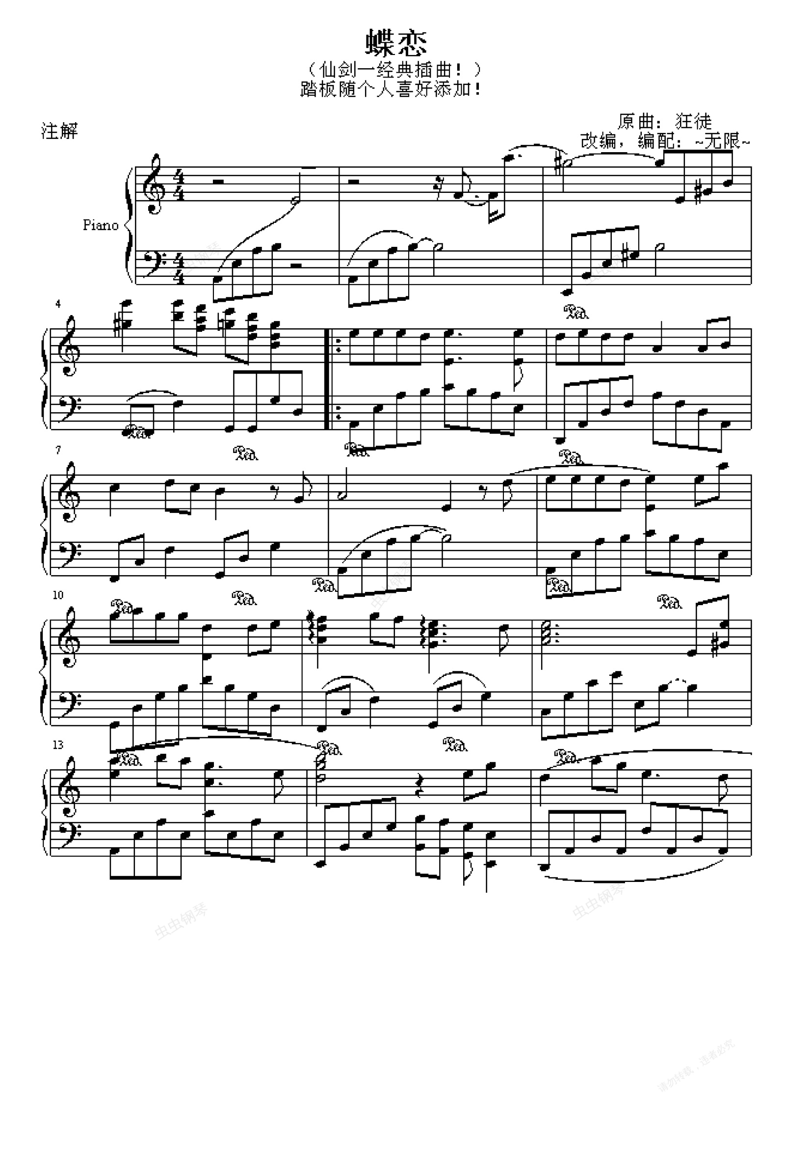 钢琴谱:蝶恋-仙剑主题曲-无限版