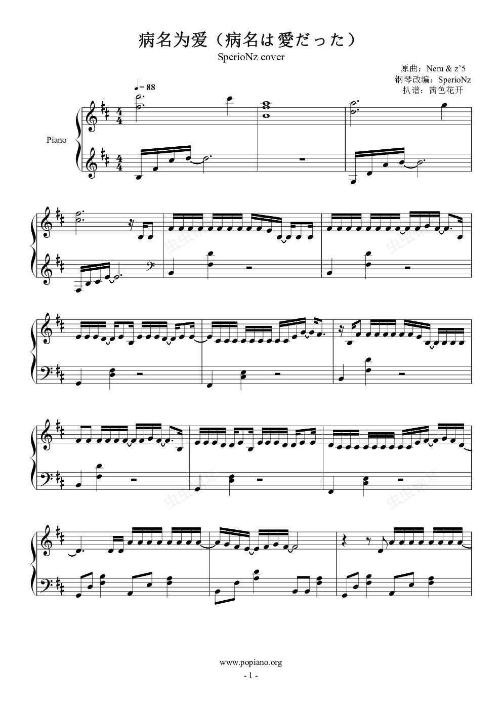 钢琴谱:【Neru & z’5】病名为爱(病名は愛だった)SperioNz cover