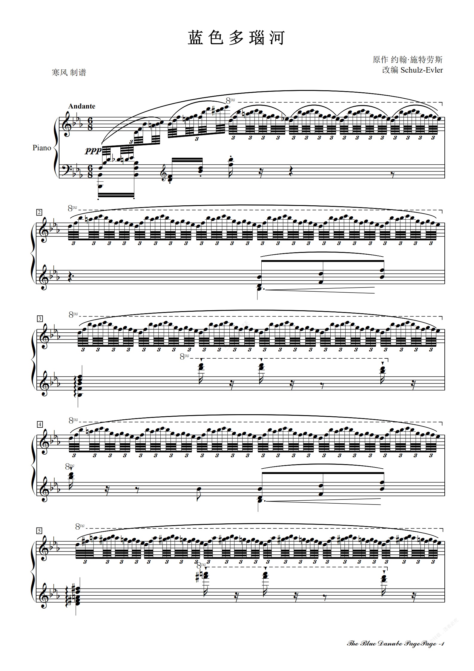 钢琴谱:蓝色多瑙河-Schulz-Evler改编
