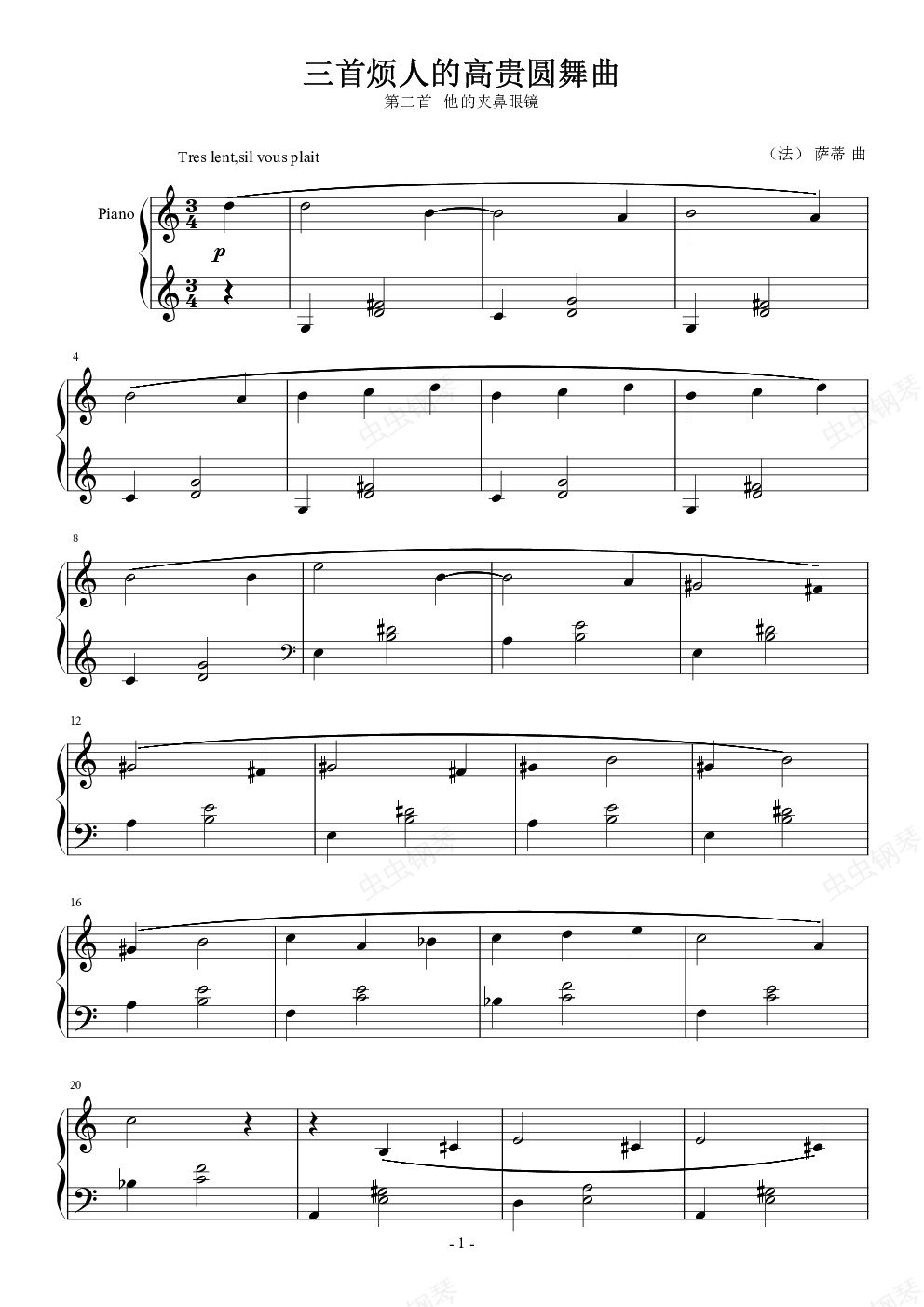 钢琴谱:萨蒂 三首烦人的高贵圆舞曲 第二首