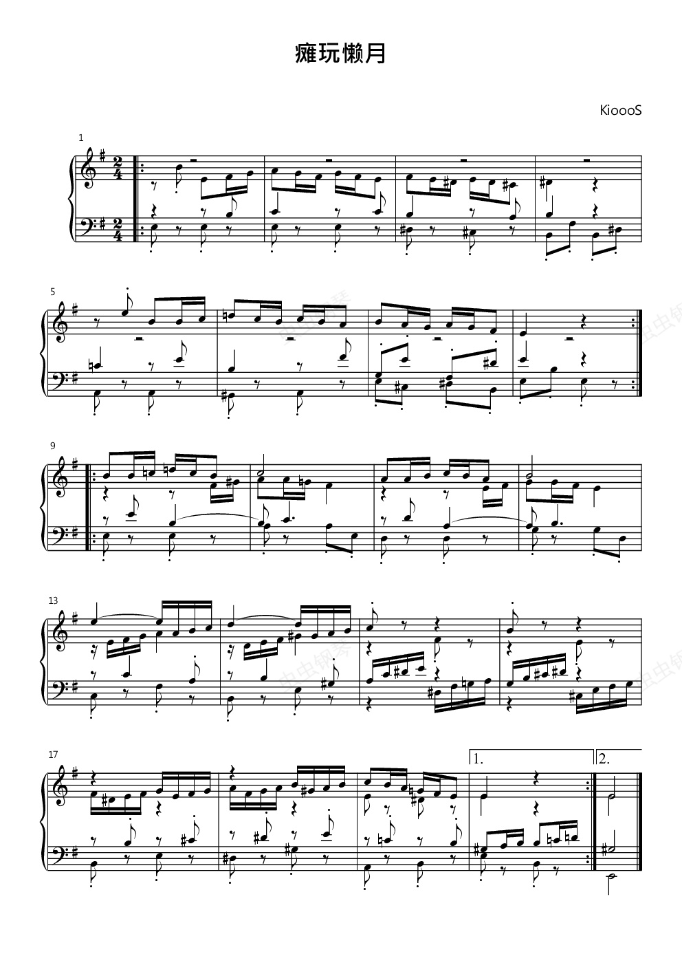 钢琴谱:瘫玩懒月