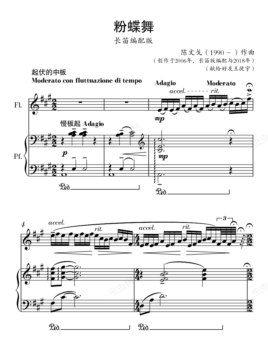 钢琴谱:粉蝶舞-长笛版,陈文戈