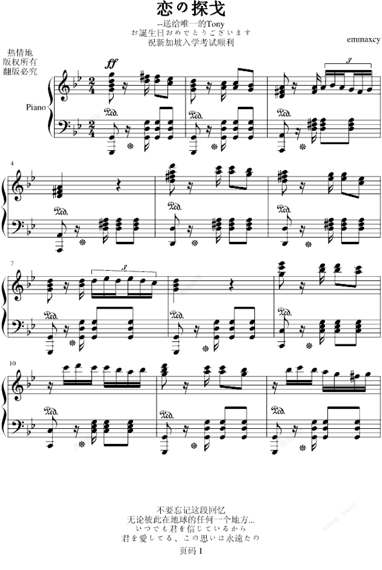 钢琴谱:恋の探戈--送给Tony