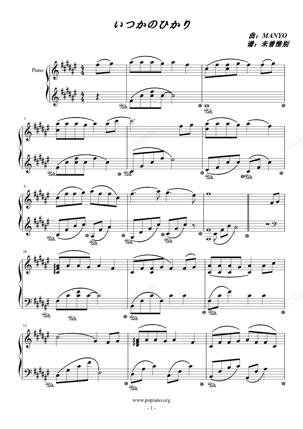 钢琴谱:いつかのひかり