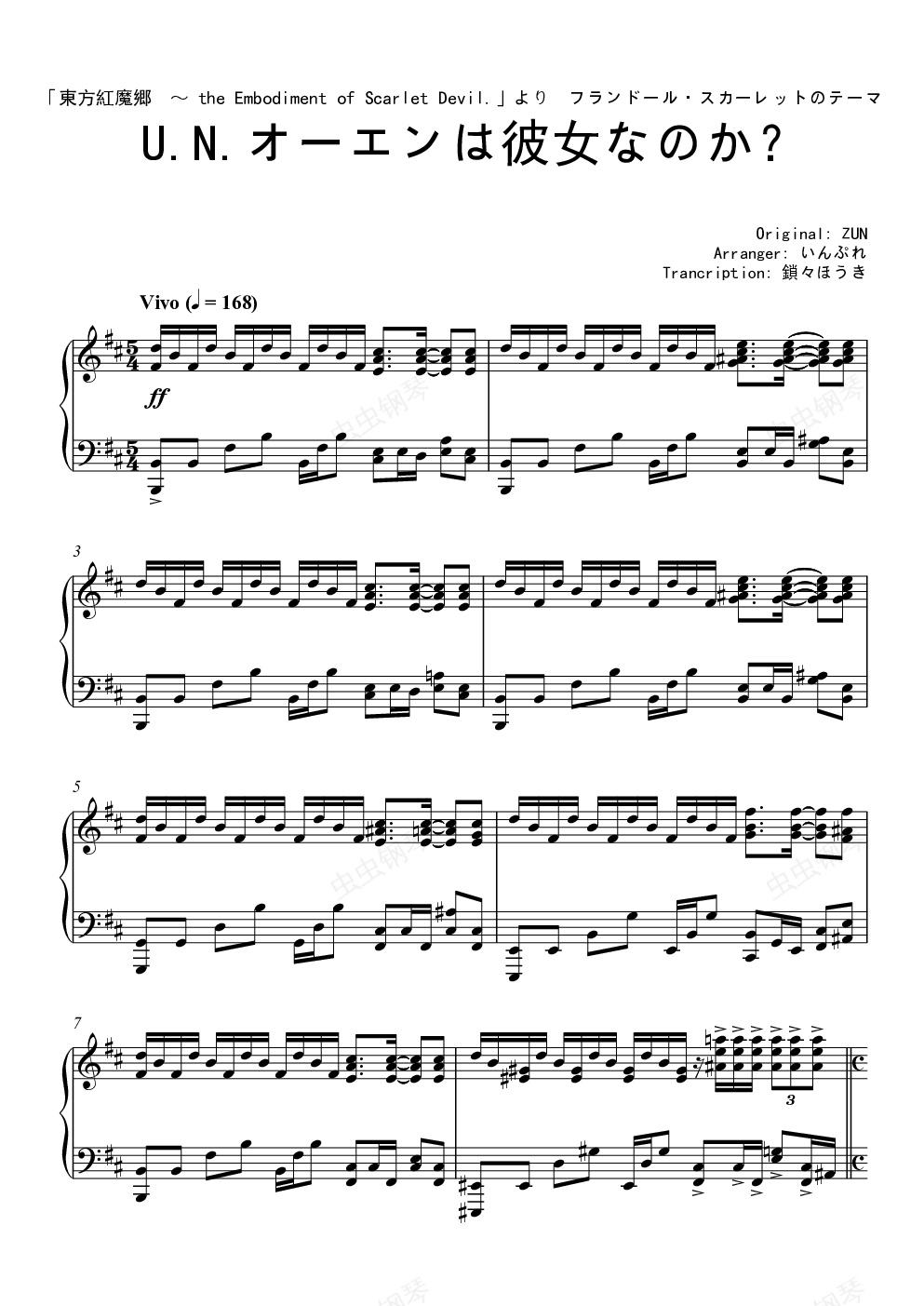 钢琴谱:【東方紅魔郷】U.N.オーエンは彼女なのか?【いんぷれ】